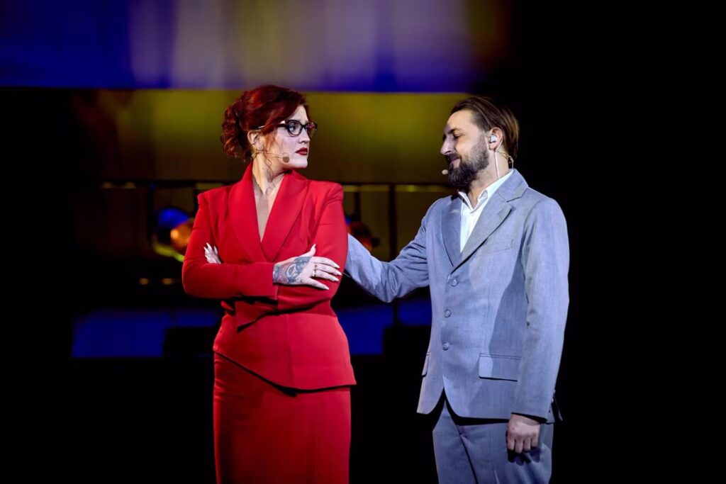 Без спойлерів буде важко розповісти, але я дуже люблю танець з Олею Жмуріною. Ми давно працюємо разом, але зазвичай наші герої конфліктують, а тут – пристрасть і танці. Також, мабуть, фінальний монолог і фінальна пісня. Вона писалася спеціально для вистави. Це текст Олександра Олеся “Вийди, змучена людьми”, а музику написав Євген Воронко, головний диригент Київської опери. Це непроста пісня за своєю структурою, оперна арія, і оскільки я не дуже практикуюся в оперному співі, а більше в роково-естрадній музиці, то для мене було викликом над нею попрацювати, але це дуже круто. Коли ми зіграли наприкінці січня три вистави поспіль, то після першої, як і після прем’єри, я сидів зі сльозами на очах, усвідомлюючи все, що ми прожили за ці дві години. Фінальний монолог і пісня ідеально фіксують усе, що ми хотіли сказати.